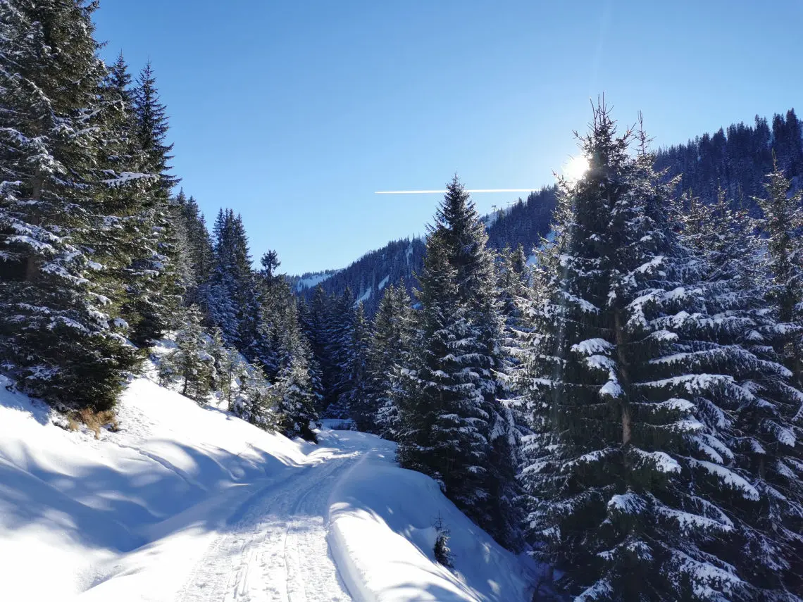 Abgehend vom Haus kannst Du wunderbar durch den Schnee spazieren - zu Fuß, mit Schneeschuhen oder mit Tourenski. Ein herrliches Gefühl, wenn die Sonne scheint, der frische Schnee glitzert und man einfach nur unendlich Zeit hat.