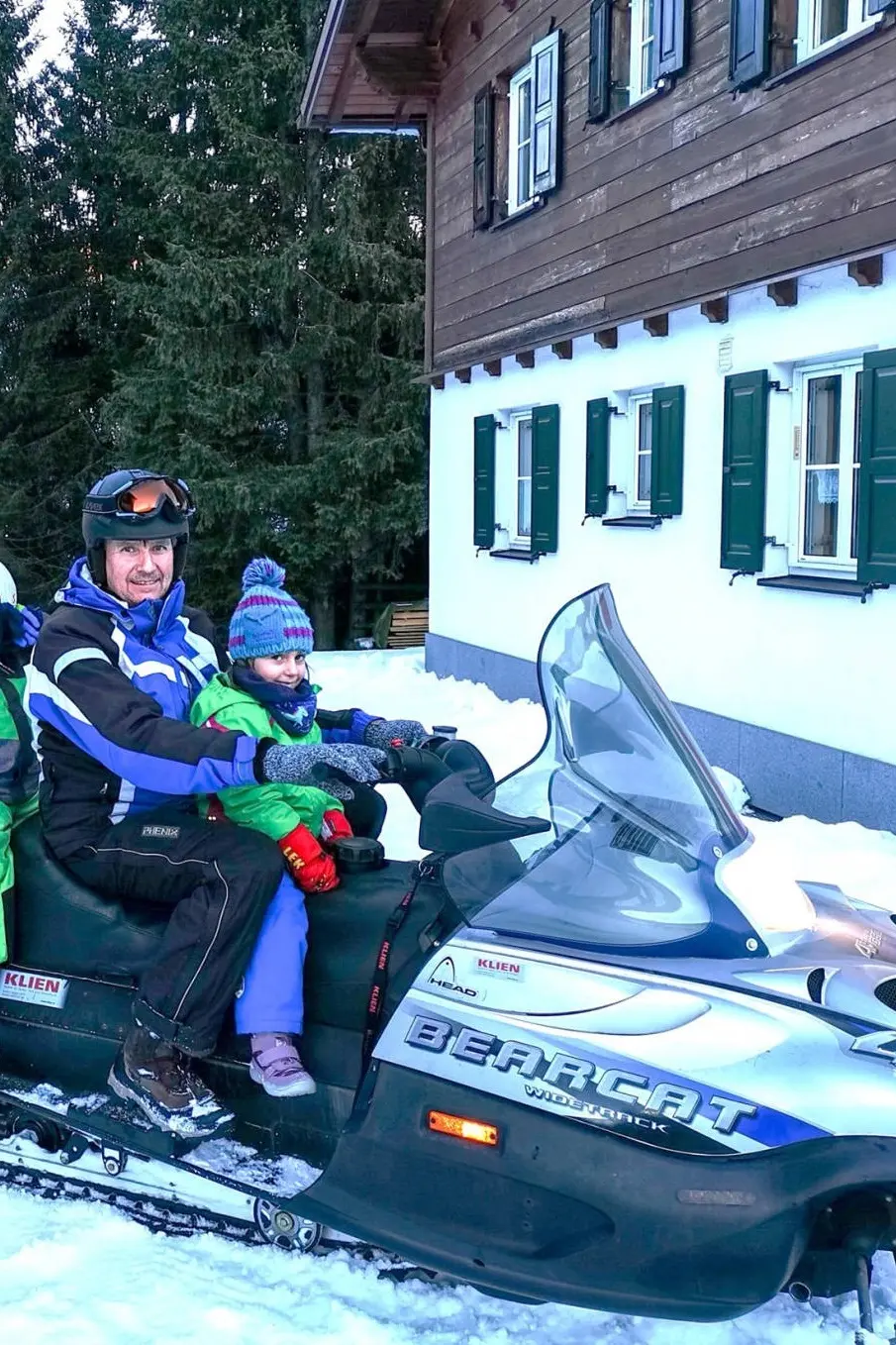 Nach der Bergfahrt mit der Garfreschabahn transportieren wir Dir Dein Gepäck ganz bequem mit unserem hauseigenen Skidoo von der Bergstation bis zum Haus. Wenn Du willst, nehmen wir Dich gerne auf eine rasante Runde mit. Gut festhalten!